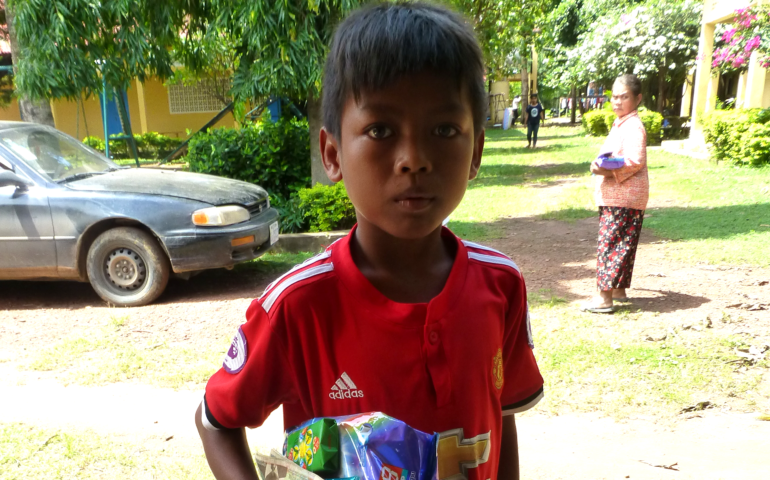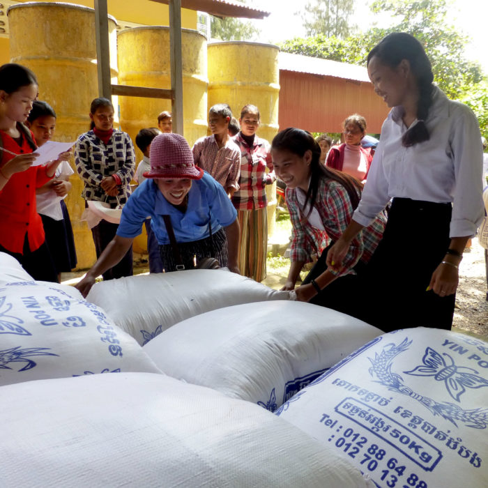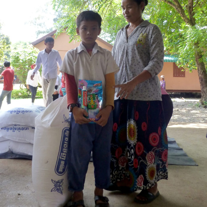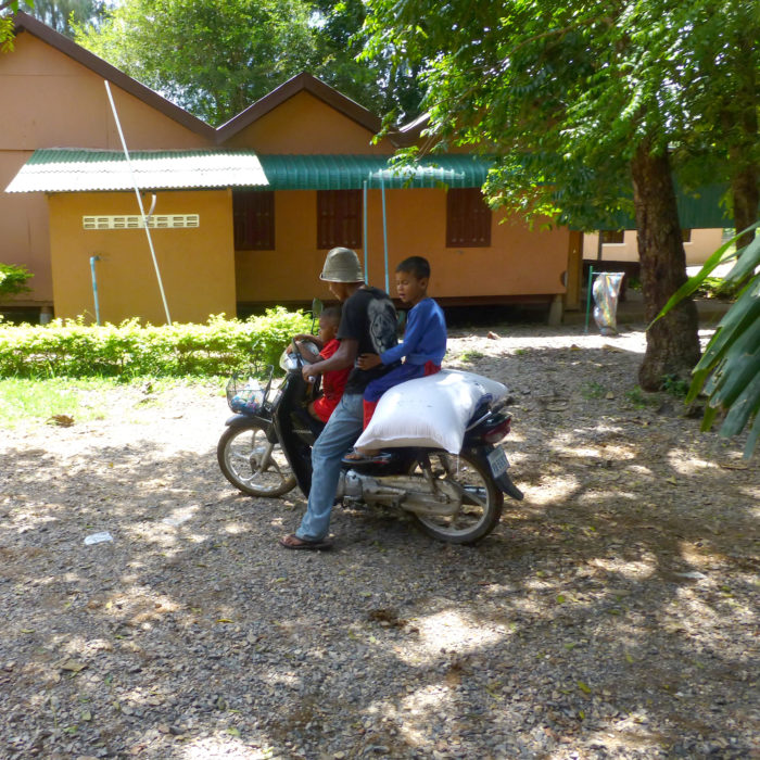 La cagnotte a également servi à financer un sac de riz de 50 KG pour nourrir la famille du petit SERNG Hun, le filleul de Marie. On vous raconte en images …