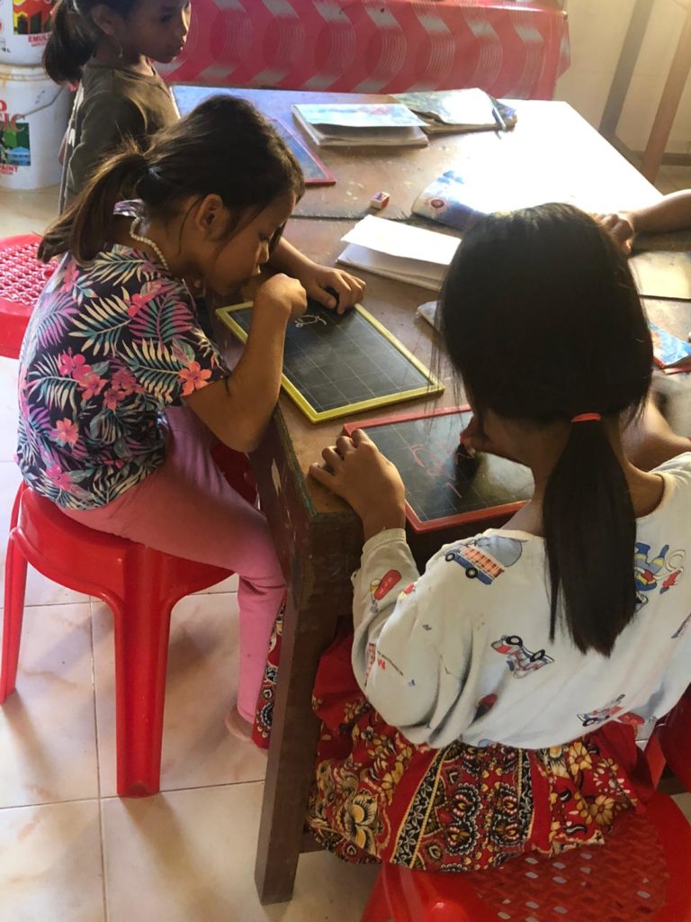 L’équipe s’est depuis lors consacré à leur offrir des activités pédagogiques de qualité pendant que les écoles restent fermées. Les enfants suivent un programme hebdomadaire comprenant des cours en ligne et à la télévision, ainsi que des activités animées par le personnel telles que des cours de khmer, d’anglais, d’informatique ou d’art. En juillet, le Centre de Soutien Scolaire a également pu rouvrir ses portes afin de proposer des cours renforcés aux bénéficiaires de l’association. Des mesures de distanciation sociale ont été mises en œuvre au sein des salles de classe, le nombre d’étudiants y étant limité à 10.