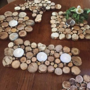 Centres de table lumineux en rondins