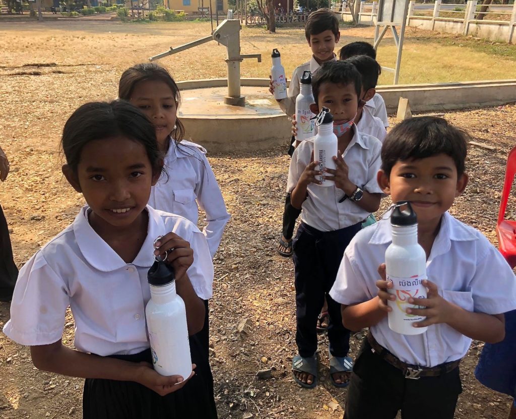 AEC-Foyer Lataste continues its awareness campaign against the scourge of plastic in Cambodia and distributes 400 metal bottles to children and teachers of Somras Komar primary school!