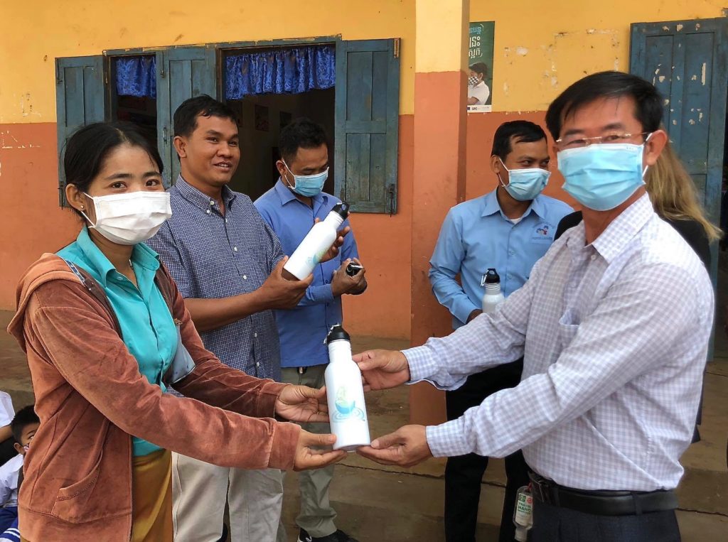 Thanks to all the donations, 400 metal bottles were distributed to the children from grade 1 to 6 as well as their teachers around a large event and in the presence of the Deputy Director of the Education Office of Serei Soaphon District.