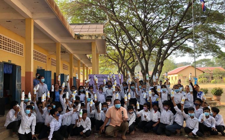 AEC-Foyer Lataste continues its awareness campaign against the scourge of plastic in Cambodia and distributes 400 metal bottles to children and teachers of Somras Komar primary school!