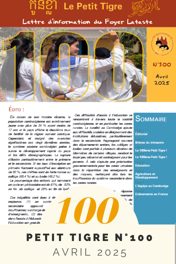 Le Petit Tigre est la newsletter trimestrielle d’AEC-Foyer Lataste. Elle permet d’informer tous nos parrains, donateurs et sympathisants des dernières actualités du Foyer.